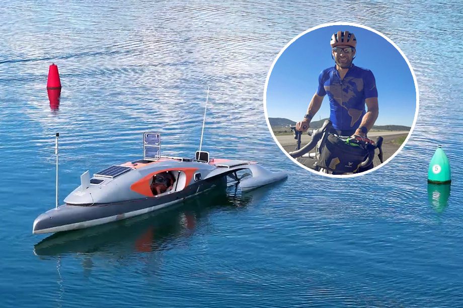 Paul Spencer quer bater recorde mundial estabelecido em 2012 utilizando um barco movido a pedal e uma bicicleta