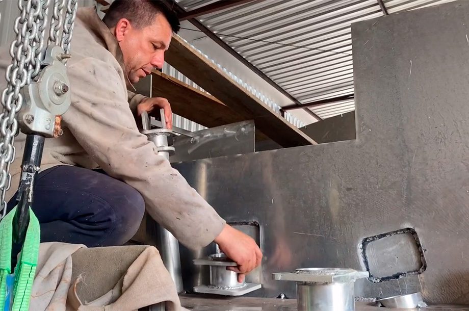 Feito isso, partiu soldar a caixa de quilha e encaixar os lemes na popa. Na entrada do barco, inclusive, Angelo resolveu fazer um degrau para facilitar a entrada no veleiro Bravura. Para isso, precisou realizar alguns ajustes no que já tinha construído — tudo isso num dia chuvoso.