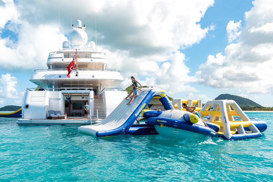 Se prepare para a lista: são dois veleiros, três jets, dois caiaques, dois submersíveis SeaBob, equipamento de mergulho, pranchas de stand up paddle, wakeboards, esquis aquáticos, reboques infláveis, flyboard, wingfoil, wakesurf, duas bicicletas de surf e até um drone para registrar a diversão — mas ainda não acabou.