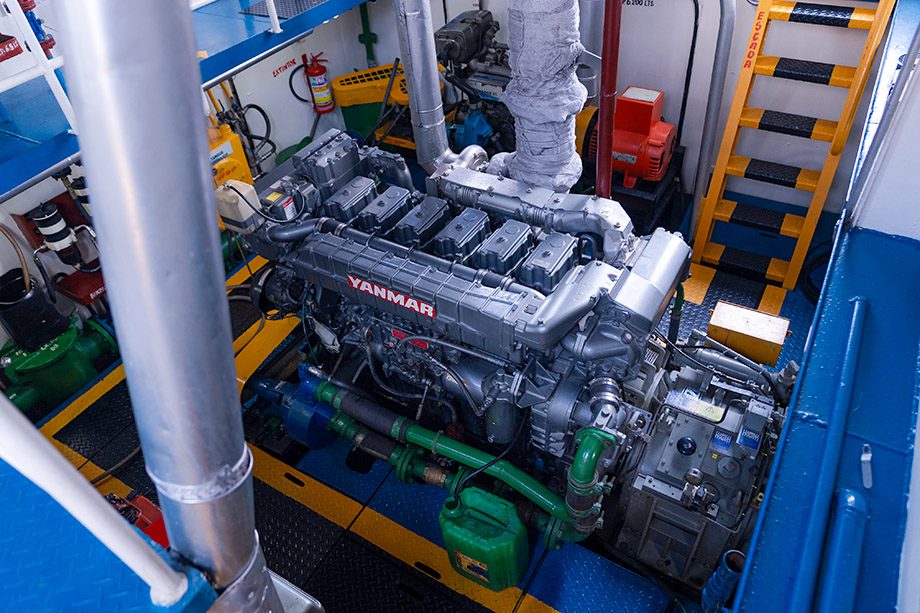 Em um dos empurradores visitados, o destaque foi o motor 6AYM-WET, de seis cilindros em linha e 829 hp de potência. Em duplas, essas embarcações empurram balsas que podem chegar a 18 mil toneladas. Ainda assim, segundo Guilherme Kodja, consultor técnico da Yanmar, o mesmo modelo também pode equipar lanchas de lazer entre 55 e 65 pés.