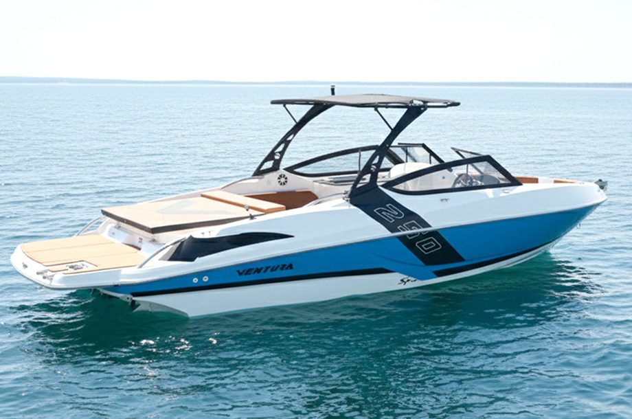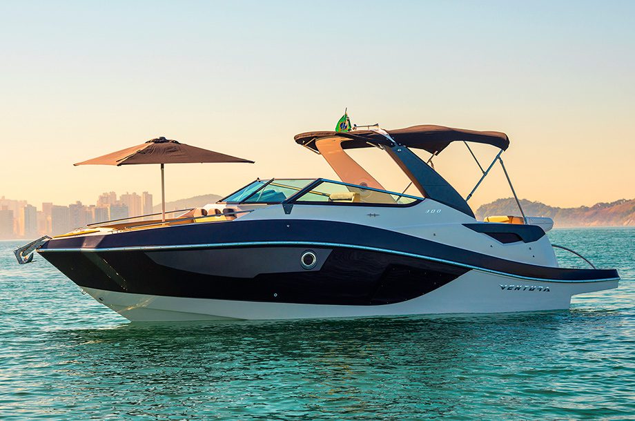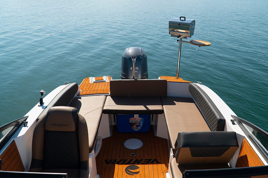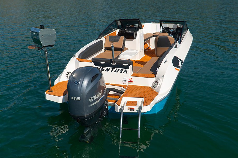 Homologada para acomodar até oito passageiros, a lancha combina tecnologia e conforto com um painel completo, sistema de som e recursos para a prática de esportes aquáticos. Tida pela Ventura como uma embarcação leve e veloz, sua motorização é de quatro tempos de 90 a 150 hp.