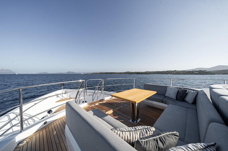 A sensação não vem apenas pelo que se vê ao olhar para fora, mas também pela forma como a luz se comporta a bordo: reflete na marcenaria refinada, no mármore escolhido a dedo e nos estofados que ganham ainda mais conforto quando encontram com o dourado do sol.