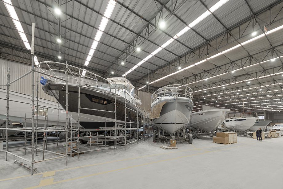 Mais do que metragem, essa expansão traduz capacidade. É o tipo de estrutura necessária para viabilizar a construção de embarcações maiores, mais complexas e com padrão global. E é nesse ponto que a dimensão do movimento brasileiro ganha ainda mais força. A segunda principal fábrica da Azimut no mundo, em Viareggio, na Itália, tem cerca de 98 mil metros quadrados. Com a ampliação em Itajaí, a unidade brasileira passa a operar com 65 mil m², um salto que a coloca em outro patamar dentro do grupo. Não se trata de comparar tamanhos, mas de entender direção. O Brasil deixa de ser uma operação periférica para se aproximar, em escala e relevância, do coração industrial da marca.
