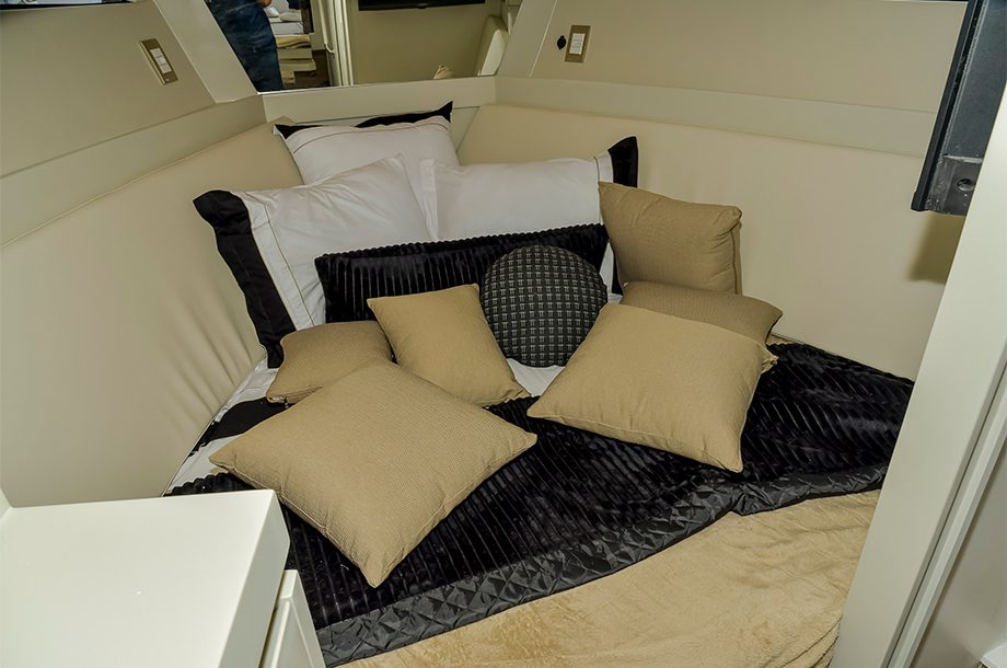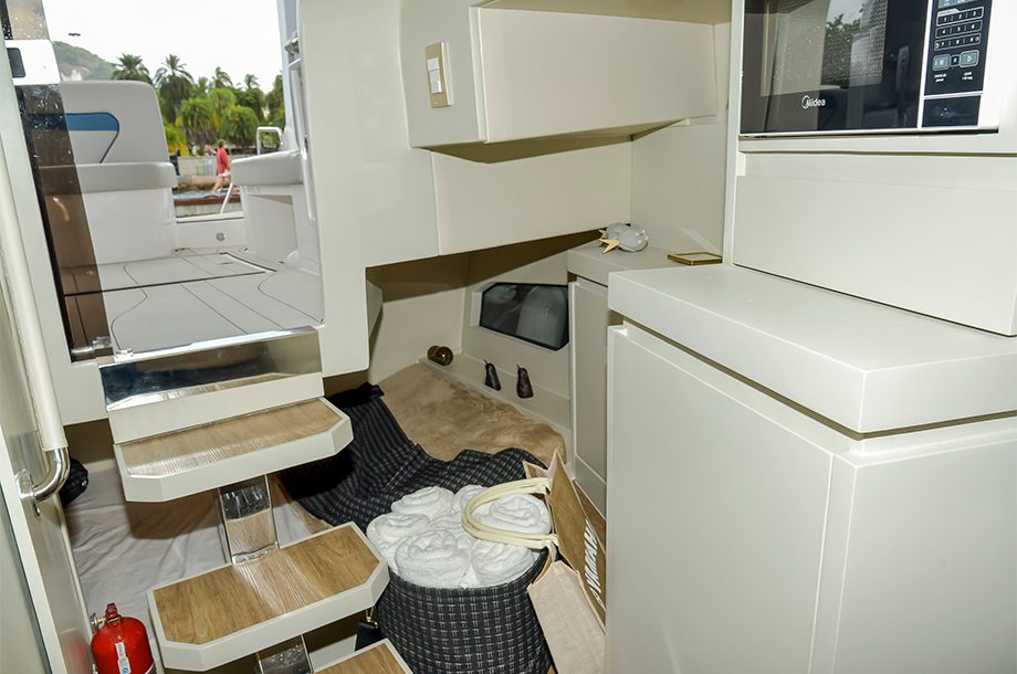 Descrito pela marca como uma lancha que oferece “conforto, layout inteligente e sensação de amplitude”, o modelo que estreia no Rio Boat Show acomoda até 14 passageiros a bordo, sendo quatro no pernoite. Não à toa, essa combinação entre espaço otimizado e a boca promete ser uma união de sucesso para a marca.