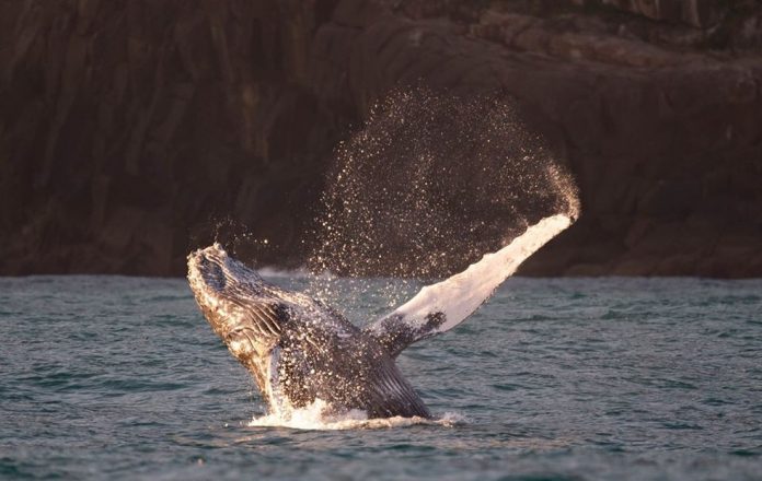 Raia da Semana Internacional de Vela de Ilhabela começa a receber baleias jubartes