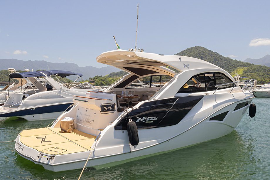 O outro barco seminovo disponível no Salão de Usados para compra e venda levado pela Bombordo é a NX40, do ano de 2021. A embarcação tem capacidade para seis pessoas em pernoite, em um camarote fechado na meia-nau, outro camarote na proa e um sofá que vira cama. A altura na cabine chega a 2,00 metros.