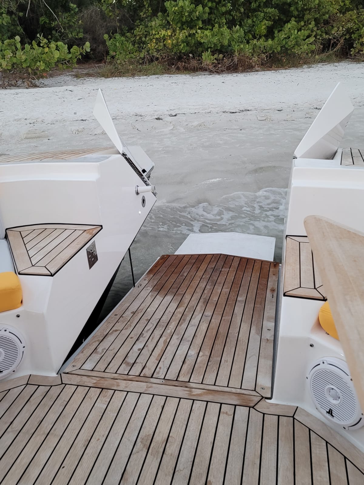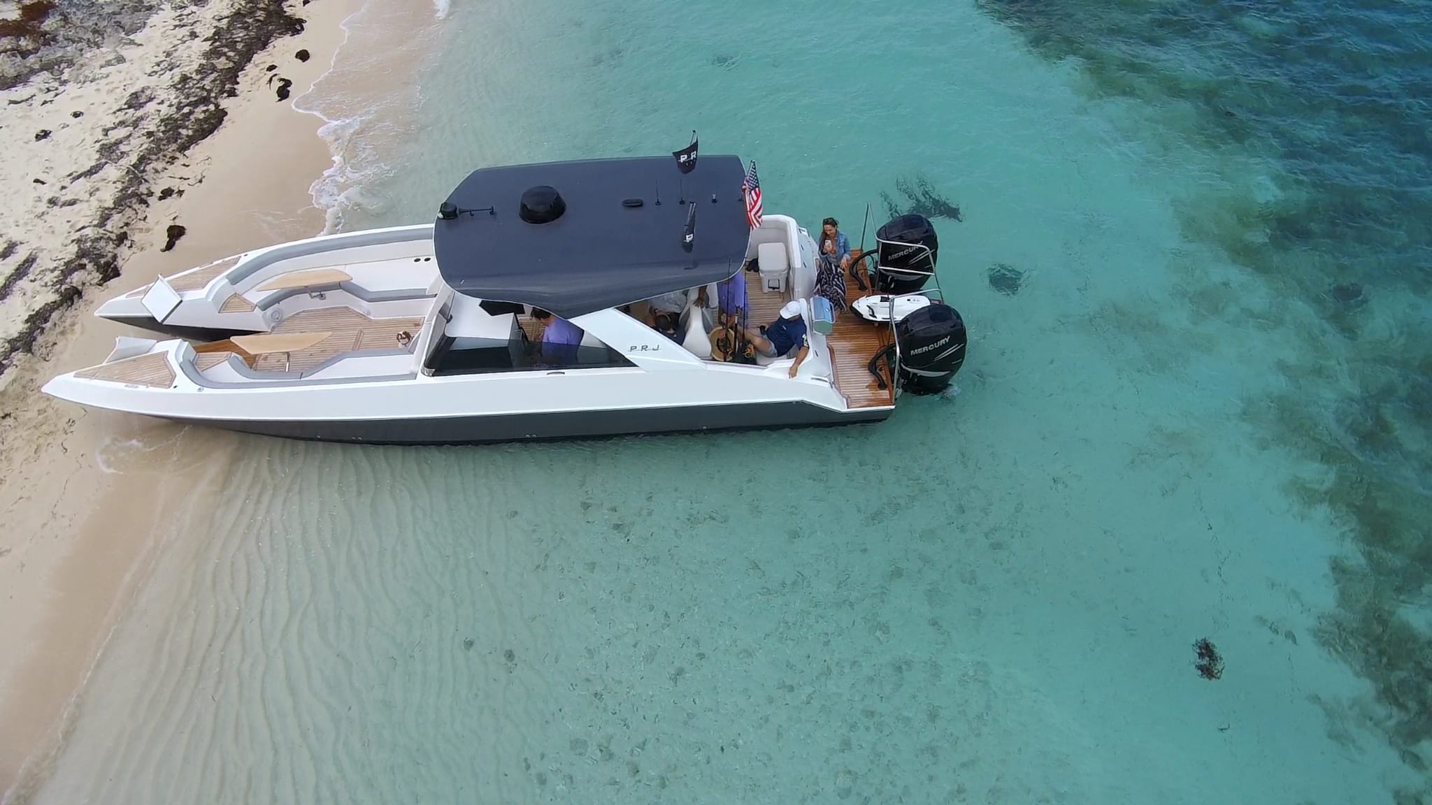 “Não tem aquele negócio de pula por aqui, pula por ali. O desembarque é direto na praia. Tudo muito seguro”, garante o comandante da PRJ Boats. Além disso, os barcos da PRJ Boats terão plataforma de popa entre os motores basculantes.