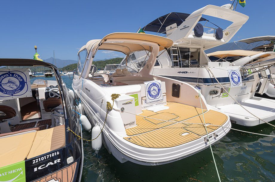 Nada menos que sete embarcações da revendedora de barcos usados estão no evento, algumas com condições flexíveis nas negociações. À NÁUTICA, José Roberto, também conhecido como “Caieira”, proprietário da loja, destacou três modelos muito visados no mercado: a Real 300 Sport, a Coral 30C e a Magna 32.3.