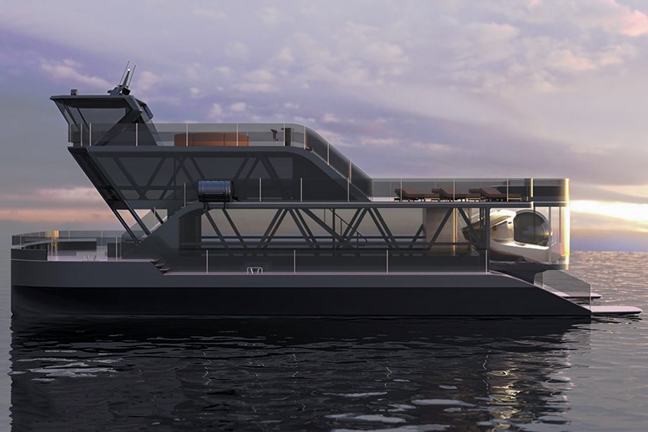 Do convés às profundezas: novo conceito de catamarã elétrico leva submersível de luxo a bordo