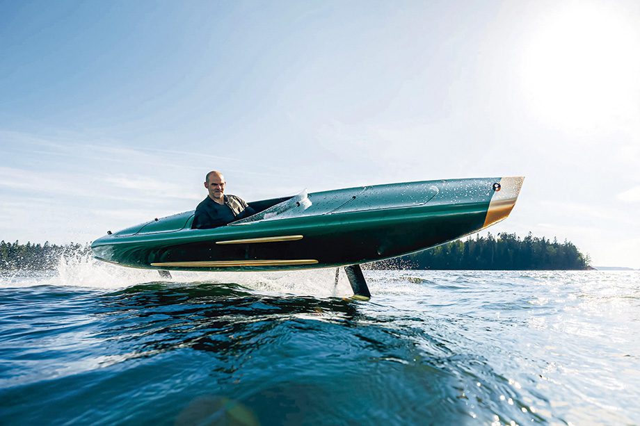 Embarcação sustentada por foils duplos é totalmente elétrica e tem aerodinâmica inspirada nos carros de Fórmula 1 da década de 1950