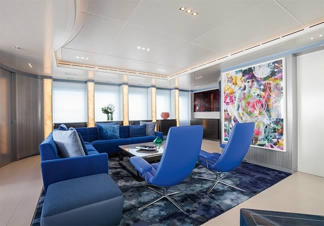 O modelo conta, ainda, com academia, jacuzzi 3 muitos outros itens de conforto, relaxamento e luxo. Pode ser equipado com dois motores Caterpillar de 1380 kW cada.