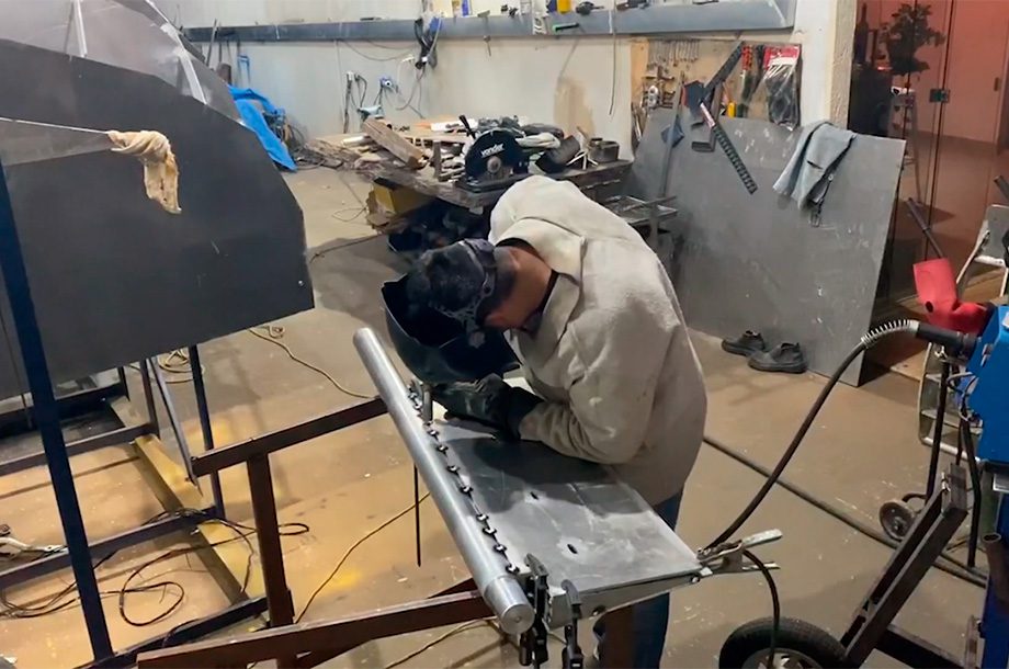 Além disso, o paranaense trabalha no corte das peças e planejamento dos encaixes de cada seção. Para facilitar a soldagem do veleiro, o corretor explica que é necessário fazer chanfros — ou seja, cortes em ângulo — nas bordas das peças.