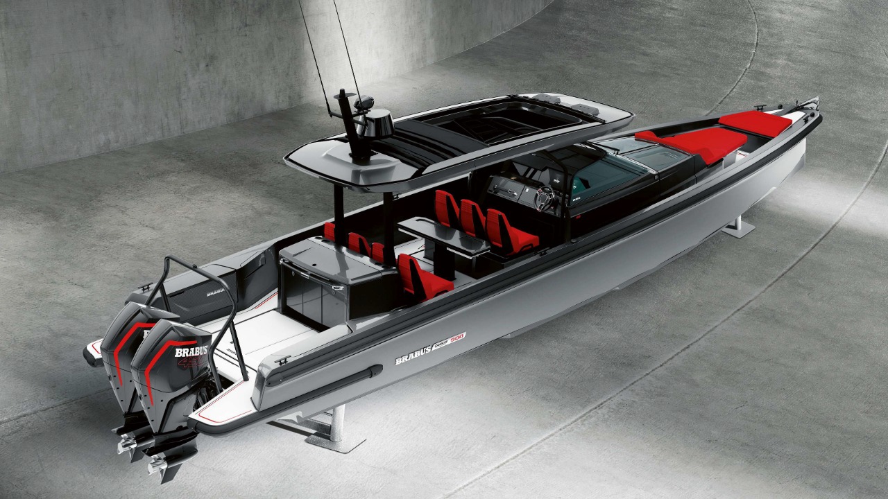 Felipe conta que as lanchas Brabus são, basicamente, as versões esportivas da Axopar. O casco, apesar de ter a mesma estrutura, passa a ser equipado com fibras de carbono. O motor é substituído por outro mais potente, alguns componentes são alterados, e tudo isso acaba elevando o valor da embarcação. Todos esses modelos são limitados — em torno de 30 a 40 exemplares — e supervisionados desde a escolha dos materiais até a costura do estofamento.