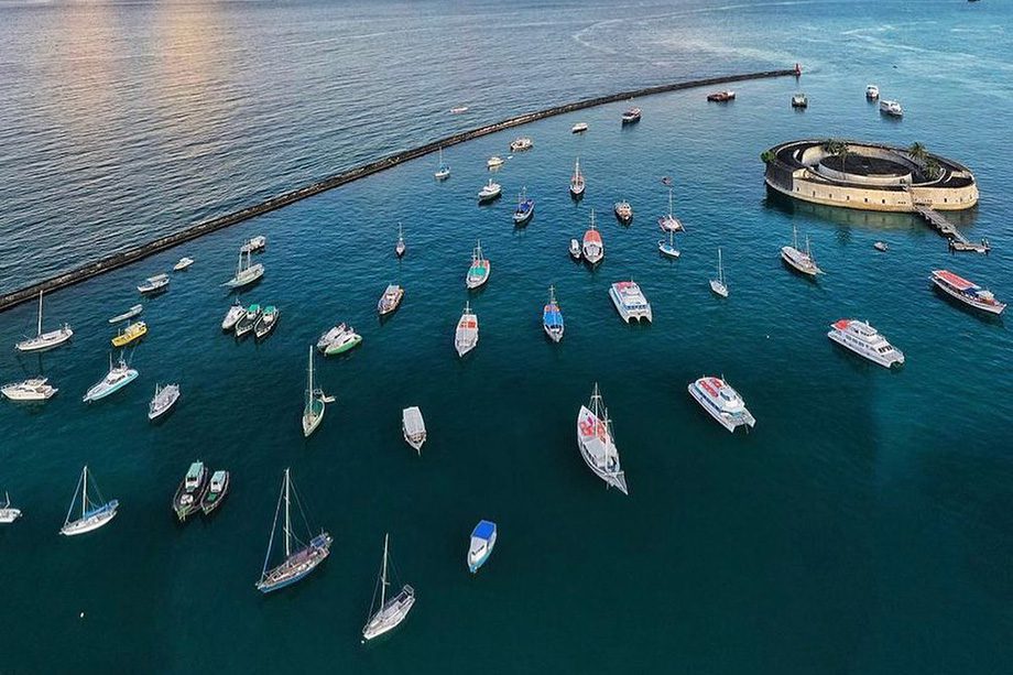 Mesmo em Salvador, conhecida pela intensa programação carnavalesca, é possível encontrar destinos náuticos mais tranquilos mesmo durante o feriado. Localizada praticamente no centro da Baía de Todos-os-Santos — a maior baía do Brasil e a segunda maior do mundo — a Ilha dos Frades reúne paisagens naturais e pontos de ancoragem mais sossegados.