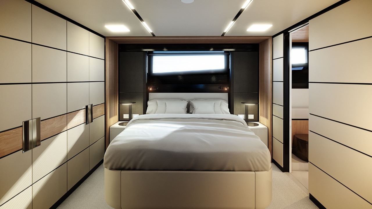 O iate ganhou uma suíte master de 37 metros quadrados, na proa, e com vista panorâmica percorrendo todo o convés principal, que é inteiro em vidro. No convés superior, o estilo permanece o mesmo: vidros laterais ao invés de pilares de sustentação, o que promove maior proteção e amplitude à área exterior. Ainda conta com um skylounge que ocupa todo esse andar, três camarotes duplos e duas garagens.