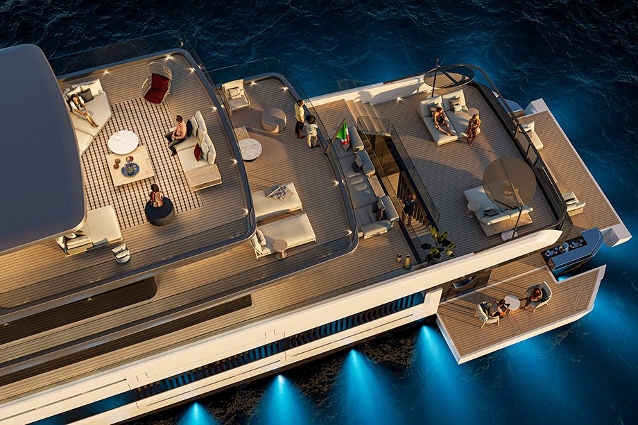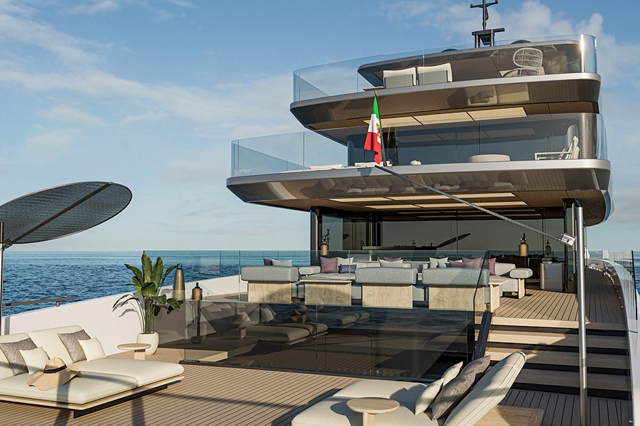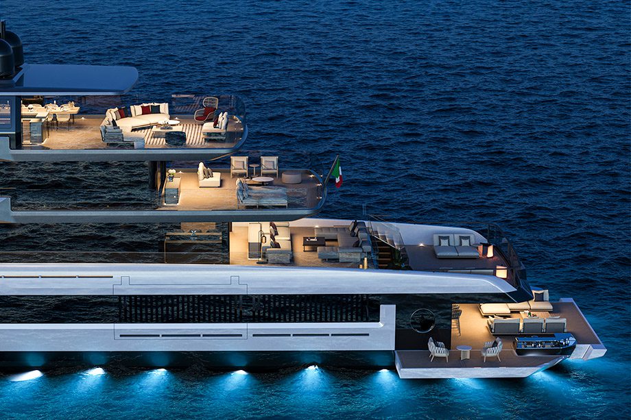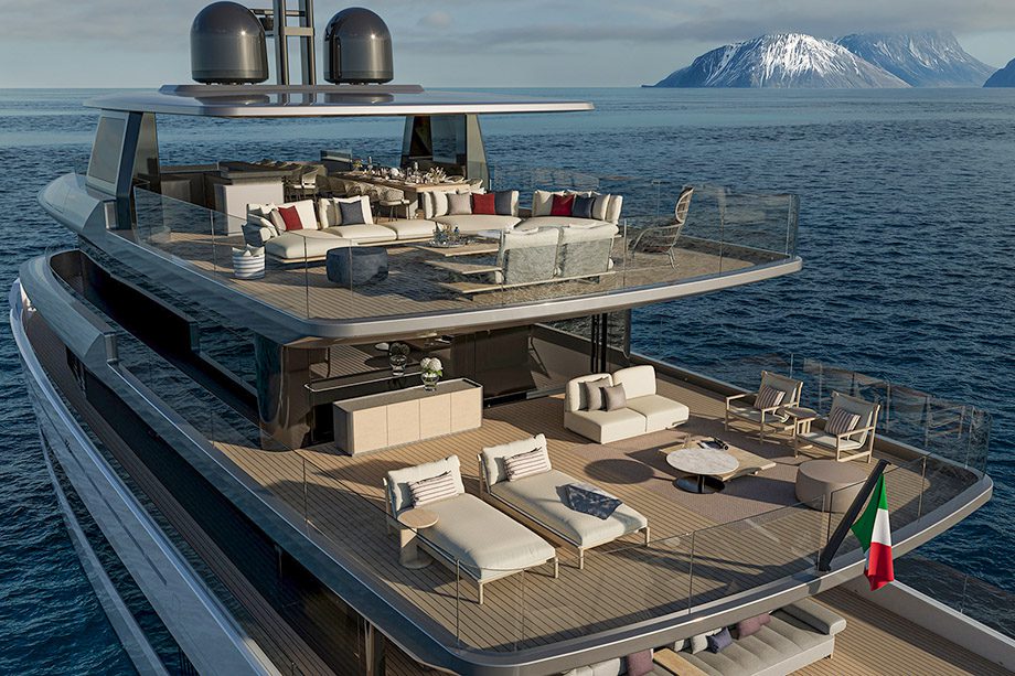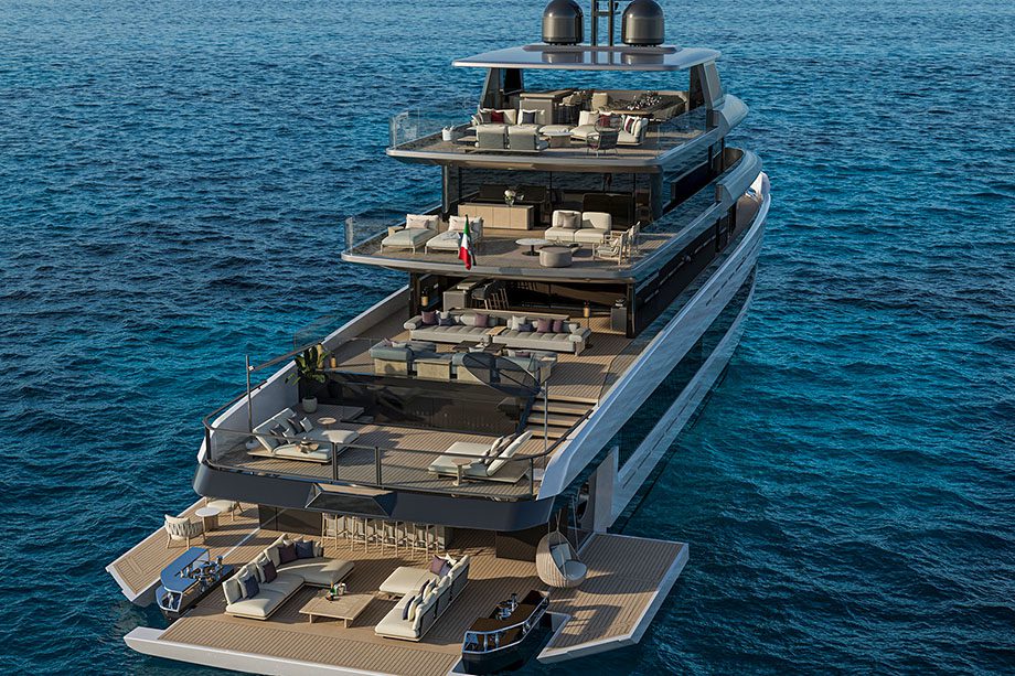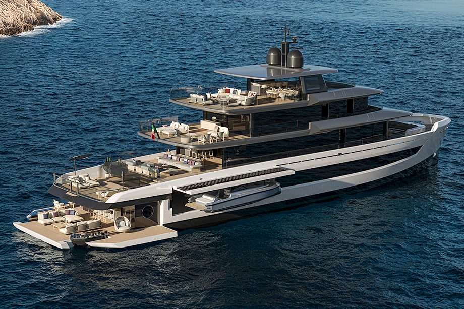 Apresentado pelo estaleiro italiano que integra o grupo Palumbo Superyachts na última quinta-feira (4), o modelo impressiona já pelo exterior: cinco deques estrategicamente divididos compõem sua silhueta robusta e ao mesmo tempo sofisticada.