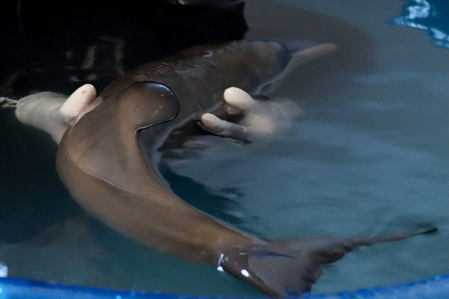Animal segue recebendo cuidados intensivos e monitoramento constante em tanque de água. Assista o vídeo!