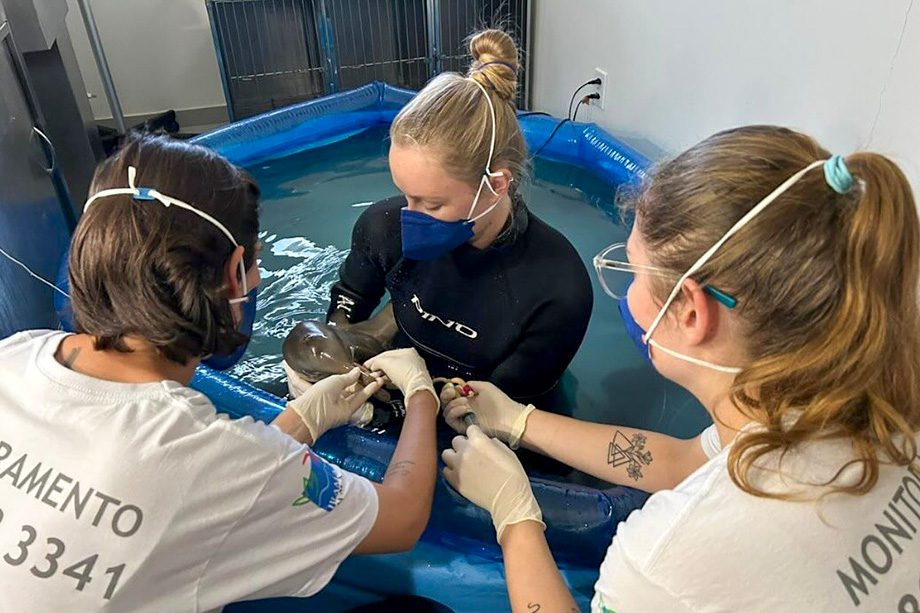 Contamos com o apoio de uma rede internacional de especialistas, que compartilha protocolos e experiências sobre o atendimento de toninhas– destacou o veterinário