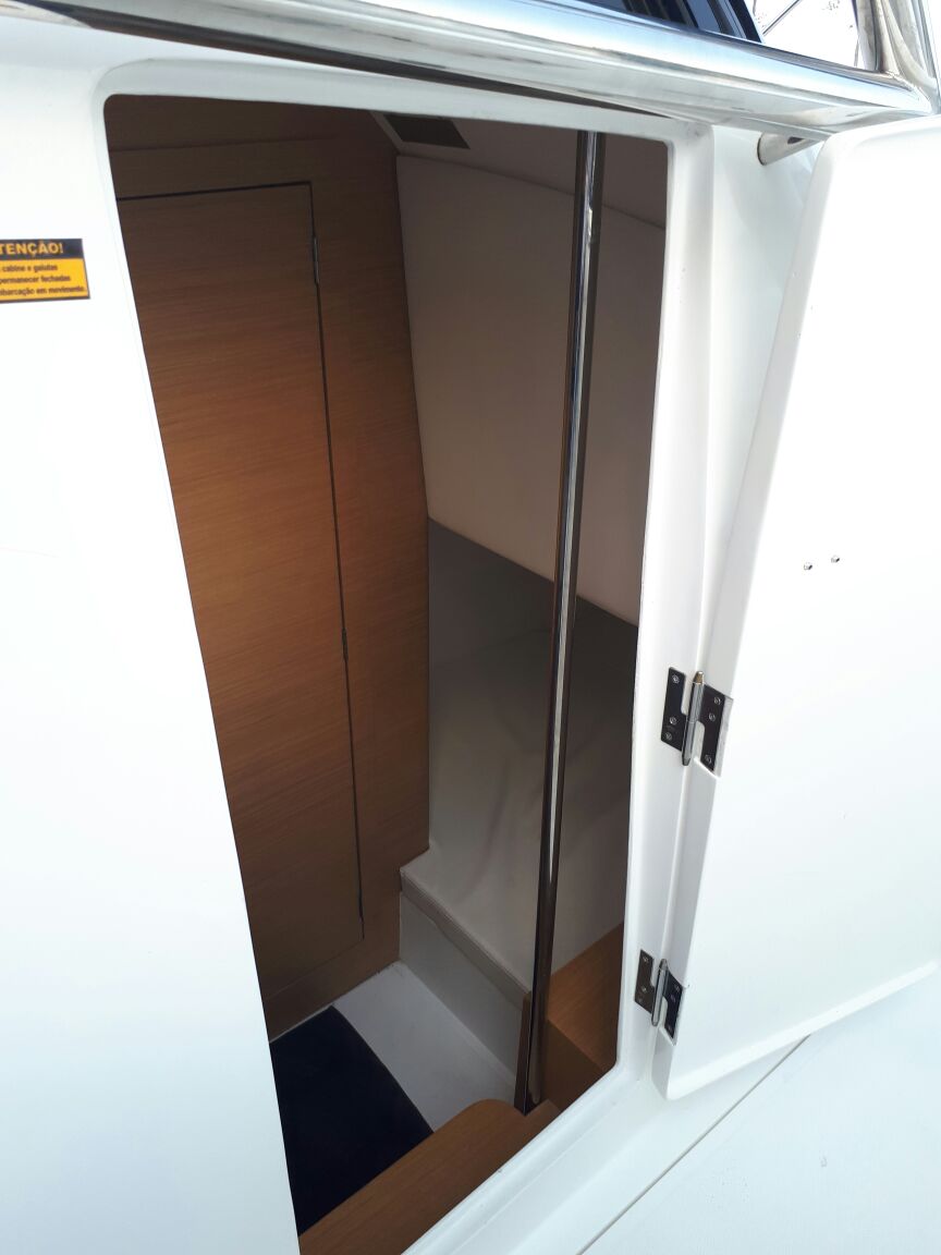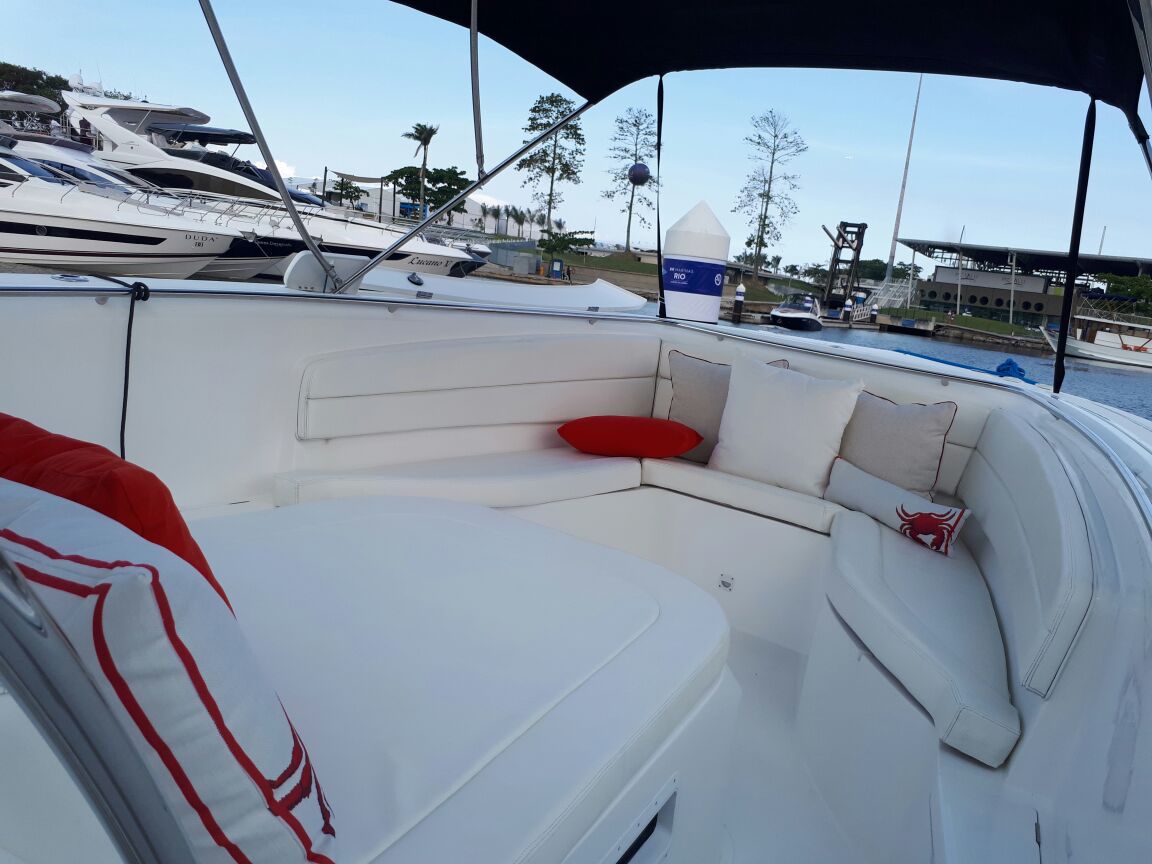 Com a fusão e os novos projetos da Fishing, o Triton Group está levando cada vez mais para a marca a questão de melhores acabamentos, mais madeira, mais estofado, mantendo a qualidade de navegação, que é o diferencial da Fishing 375. O modelo, que é um dos destaques do Rio Boat Show 2017, possui bom espaço, além de permitir até quatro motores de popa (o que está exposto no salão náutico carioca está equipado com três motores). Segundo a empresa, é um barco para pessoas exigentes.
