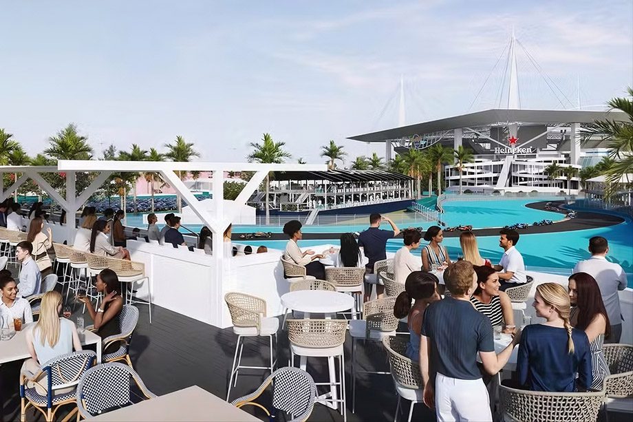 Visitantes do espaço contarão, inclusive, com uma piscina. Foto: Formula 1 Miami Grand Prix / Divulgação