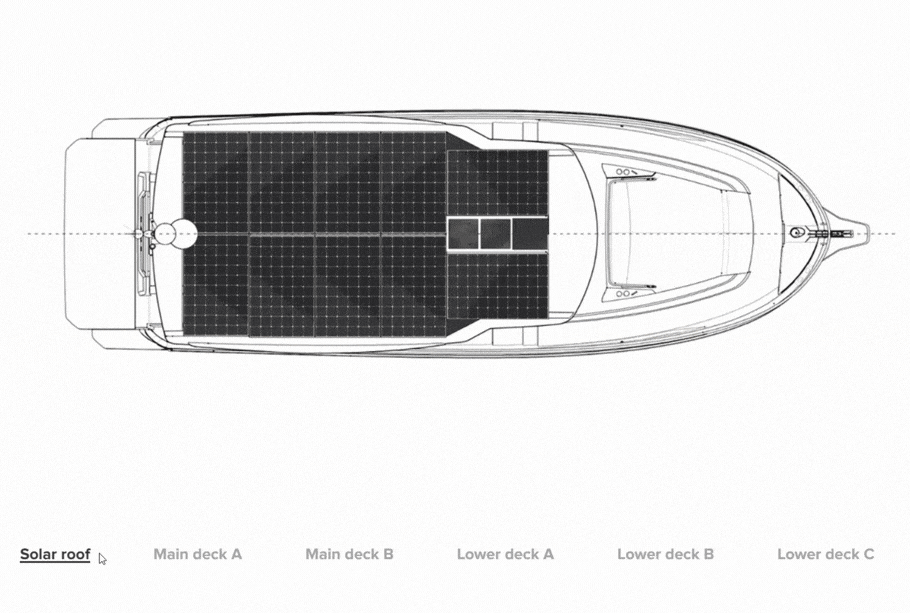 Além disso, uma das maiores inovações do Greenline 42 foi a ampliação de sua capacidade de carga obtida pela energia solar. O modelo passou de 1.6 kW de geração solar (visto no modelo Greenline 40) para 4.3 kW no teto solar atual. “Em um dia típico de verão, esse sistema produz cerca de 22 kW”, afirma Pedro.