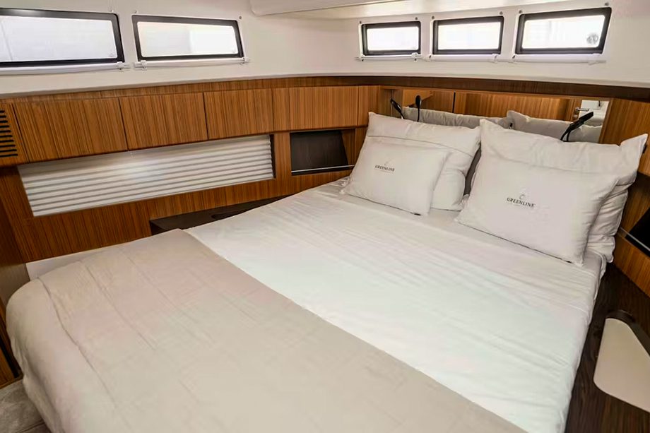 No modo elétrico, o Greenline 42 oferece uma navegação totalmente silenciosa e com zero emissões, ideal para deslocamentos curtos ou mudanças de ancoragem.