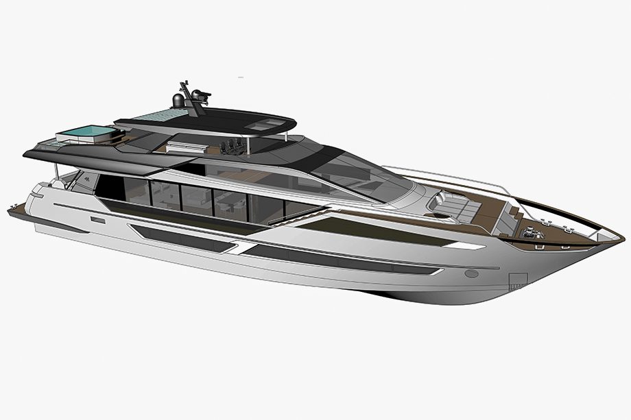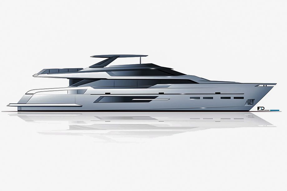 Uma fusão de estilos. O estaleiro americano Hargrave Custom Yachts, conhecido por projetos sob medida, revelou um iate que se diferencia pelo design totalmente assinado pelo italiano Patrizio Facheris. Uma colaboração que foge da tradição, já que a Hargrave costuma criar seus próprios designs.
