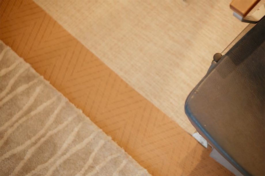 Os revestimentos vinílicos adesivos que imitam textura de madeira utilizados no JAQ H1 foram da linha Decor Freijó Astúrias. Além dele, também foram aplicados o Kroma Forma Falésia, o Decor Tramatto Bege, o Laka Acetinado Preto Modena e o Brushed Black em diferentes ambientes do barco-escola.