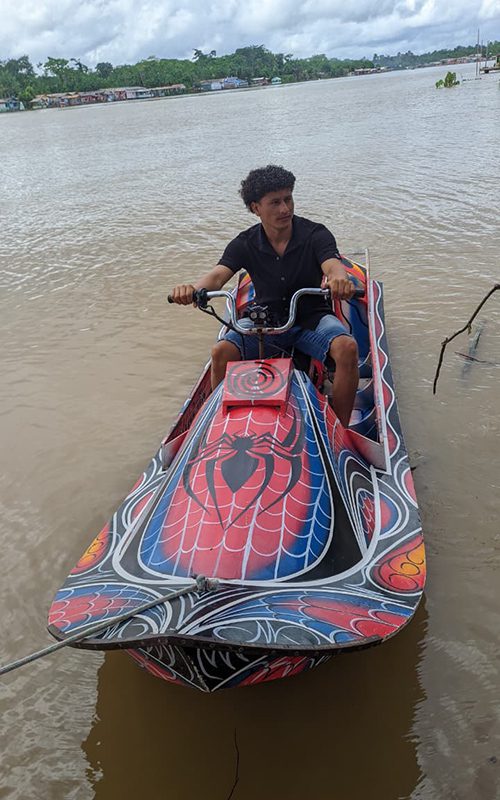 Inclusive, grande parte da população utiliza pequenas embarcações para se deslocar entre a zona urbana e as comunidades rurais e ribeirinhas. Elilon, por exemplo, diz usar sua invenção para “absolutamente tudo”: desde passeios recreativos a deliveries — como entregas de açaí. Veja abaixo: