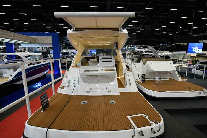 Lancha de 37 pés com painéis solares no hard top é lançada pela Solara no Boat Show