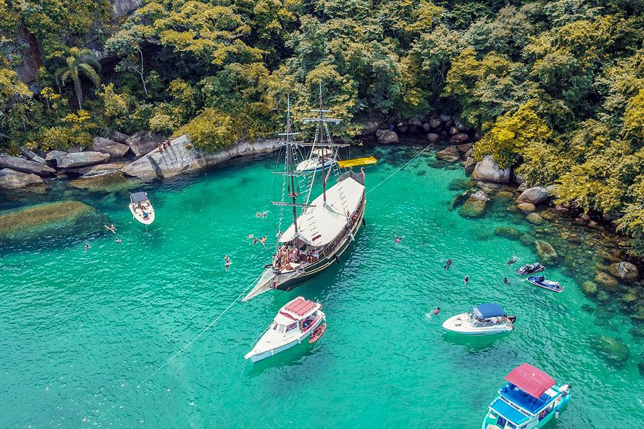 O acesso à “Maldivas brasileira” é feito apenas por barco. A ilha fica a cerca de uma hora de navegação para quem parte do cais central de Paraty. Empresas locais oferecem transporte regular, com saídas frequentes ao longo do dia.