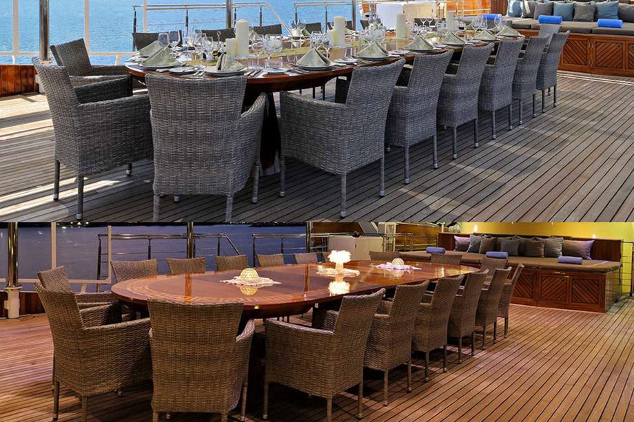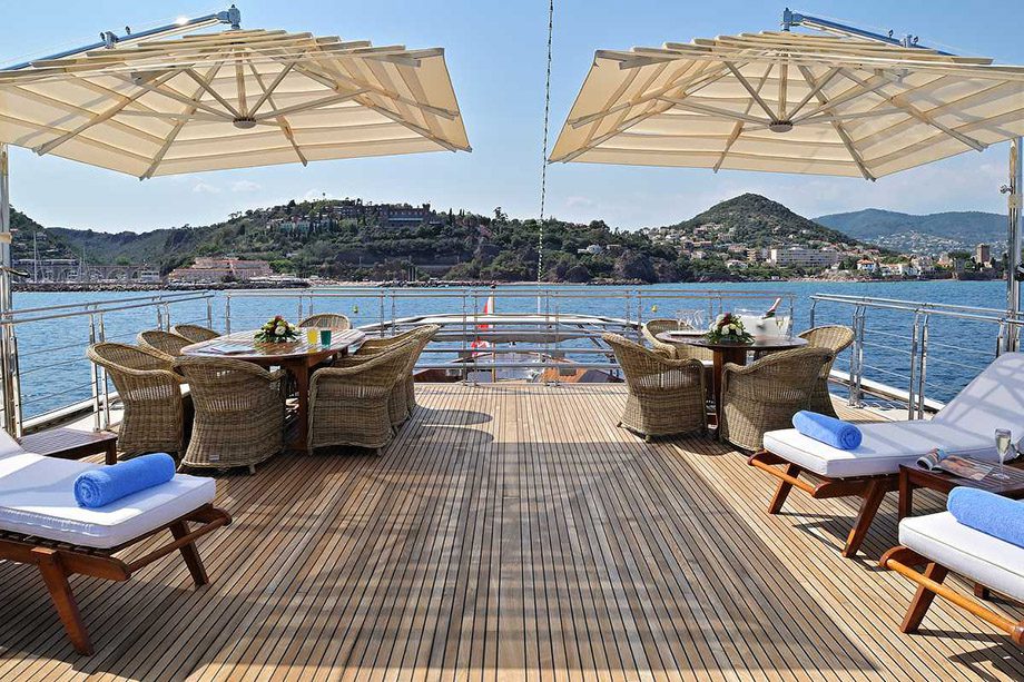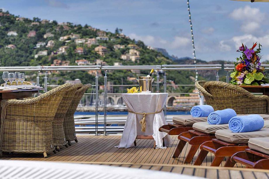 Alguns toques especiais escolhidos por Jackie (ex-mulher de Onassis), inclusive, foram mantidos para enfatizar o aspecto vintage da embarcação. Um bom exemplo são os nomes das cabines, todas batizadas de ilhas gregas. Estas, por sinal, são suficientes para 36 hóspedes e 40 tripulantes.