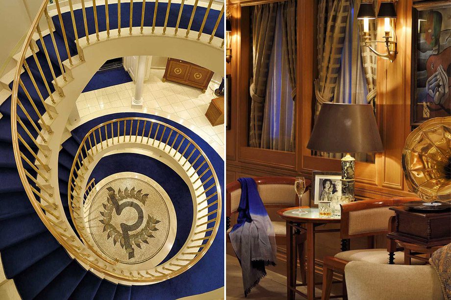 Para os visitantes, há 14 cabines que variam de 13 a 21,5 m² e intercalam camas de casal e solteiro para até três pessoas em alguns dos quartos. O ponto-comum entre todos é o estilo vintage, com tecidos estampados que transmitem uma elegância atemporal. A tripulação é acomodada em 18 cabines mais simples.