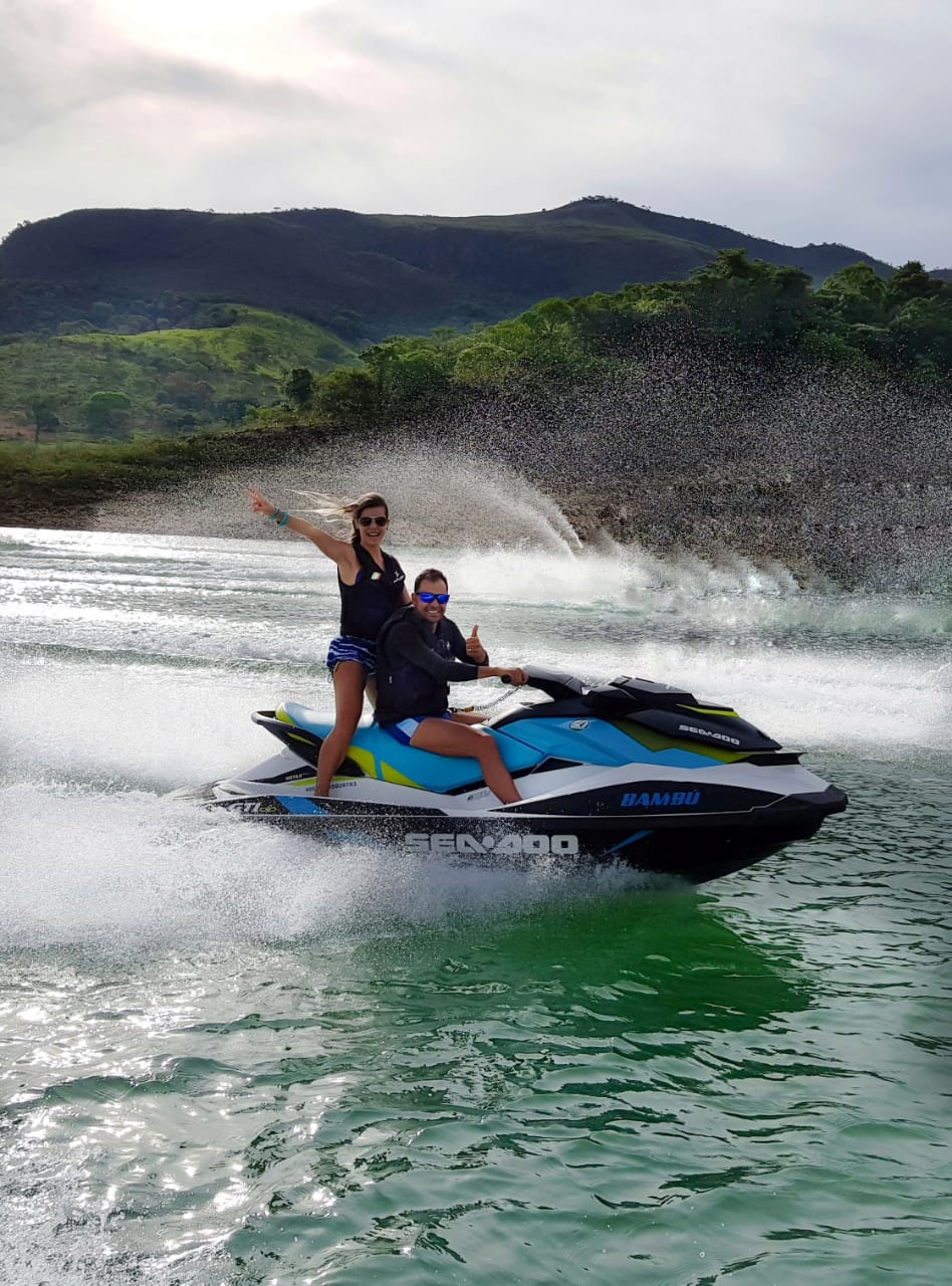 Um dos melhores lugares para navegar no nosso país, a Represa de Furnas (no sul de Minas Gerais) foi praticamente o quintal da casa da mineira Maria Neiva durante oito anos. Foi lá que ela e o marido começaram a andar de jet e se apaixonaram pela vida aquática. “Em 2010, compramos o nosso primeiro jet, um GTI 130, dourado, da Sea-Doo. Depois dele, tivemos outros quatro. O atual, mais um GTI, está com a gente desde 2015. Por que jets sempre do mesmo modelo?