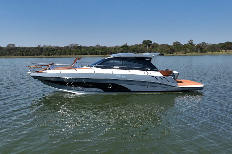 Um dos modelos mais vendidos da marca no Brasil e no exterior, a lancha de 38 pés da Triton combina desempenho com soluções voltadas ao conforto a bordo. A embarcação conta com uma cabine fechada, com quarto de casal e banheiro completo.