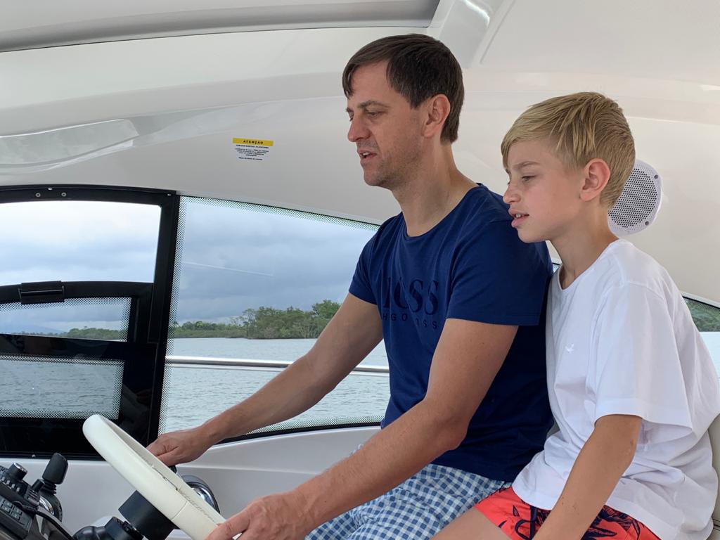 Com o passar dos anos, ele acabou sendo inserido no meio náutico por causa dos filhos. “Os pais dos melhores amigos da escola dos meus filhos tinham barco e eles começaram a convidar para ir junto. Meus filhos adoraram! Em um fim de semana, eles me convidaram também e eu acabei indo. Achei muito bacana a natureza e o momento em família que o barco proporcionava. Minha mulher também ficou entusiasmada. Foi o start!”, lembra Giorgeo, que comprou seu primeiro barco, uma Sessa C40, a qual nomeou de “Z”, no São Paulo Boat Show de 2018.