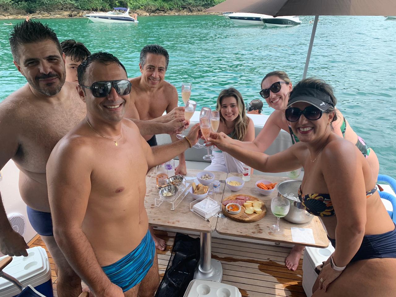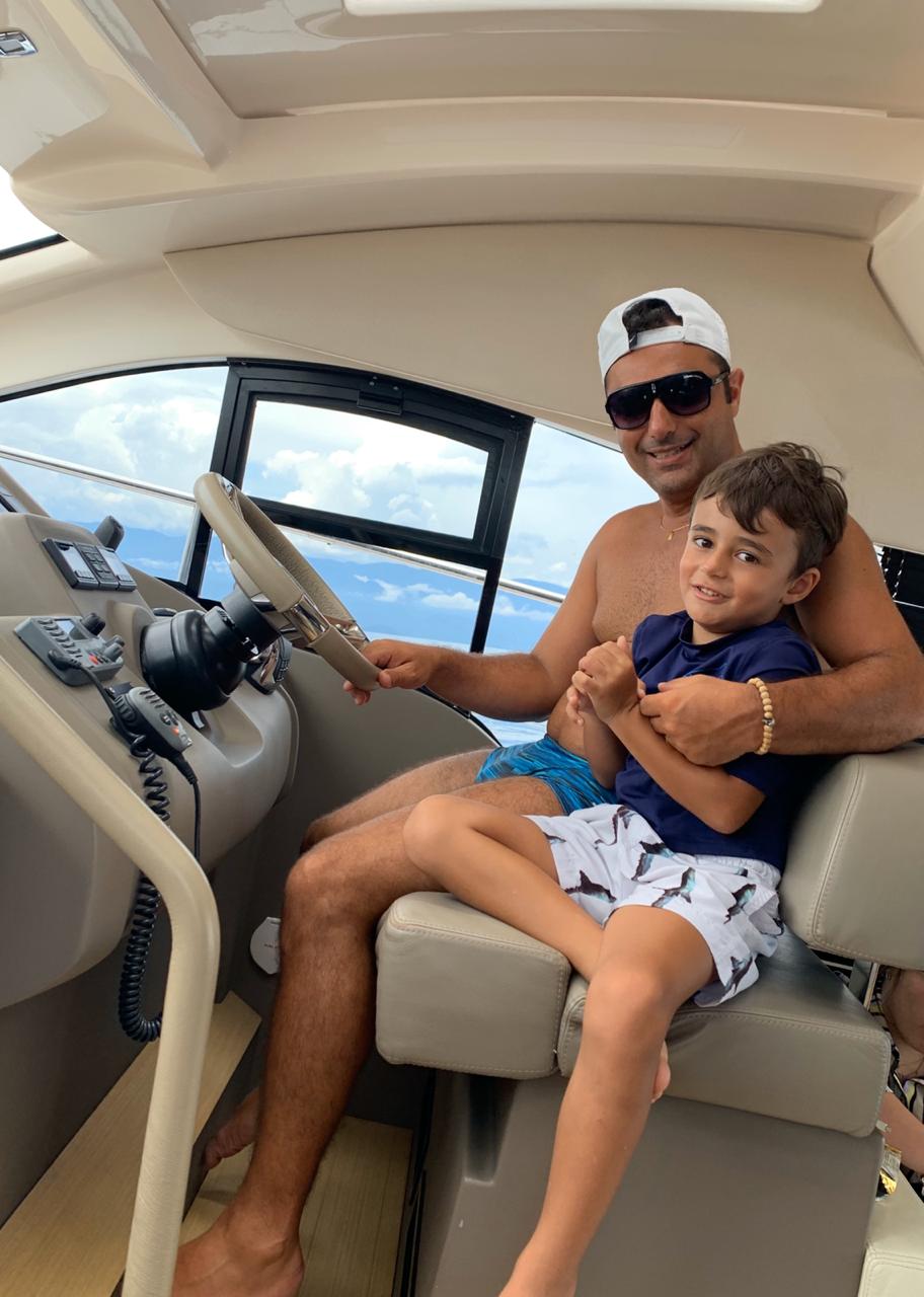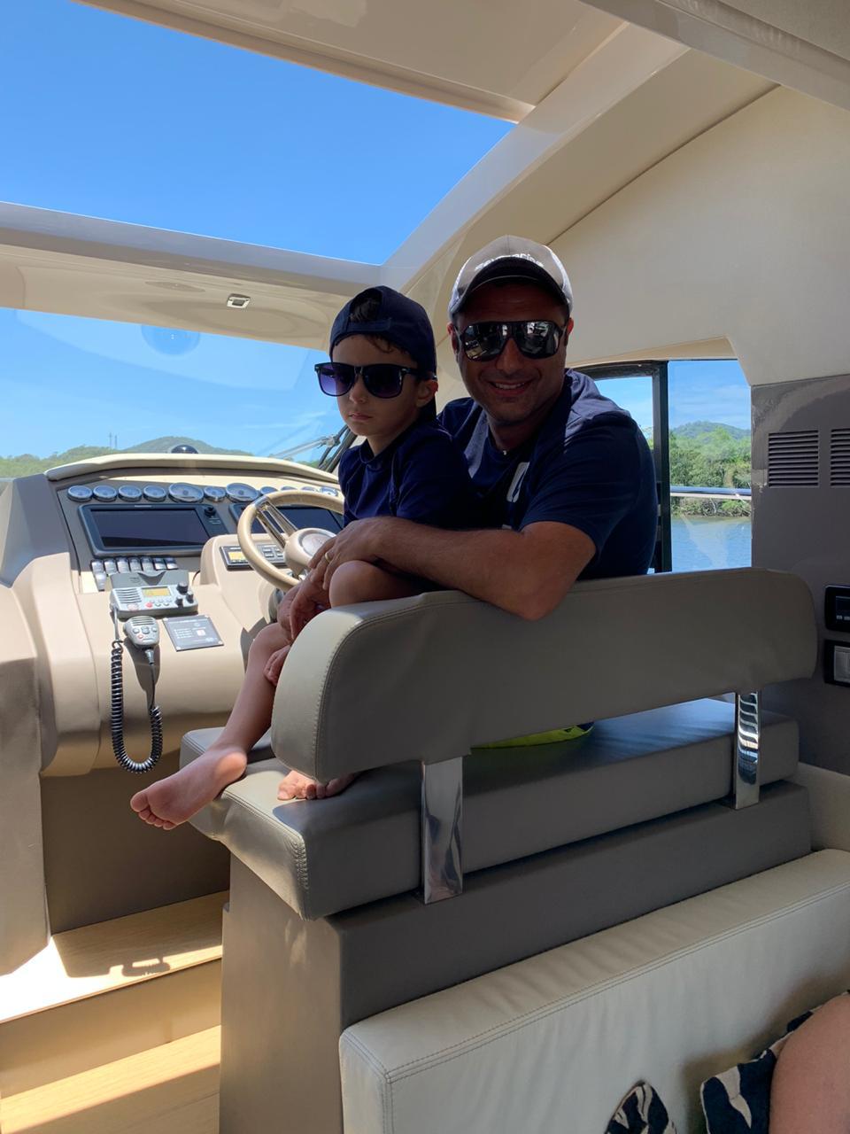 “A Sessa C42 tem duas suítes, cozinha completa, área gourmet na popa, plataforma submergível, acabamento acima da média, joystick e ótima navegação, impulsionada por dois motores D6-IPS 600, de 435 hp cada. Enfim, hoje, é o barco ideal para uma família como a nossa”, avalia Marcel.
