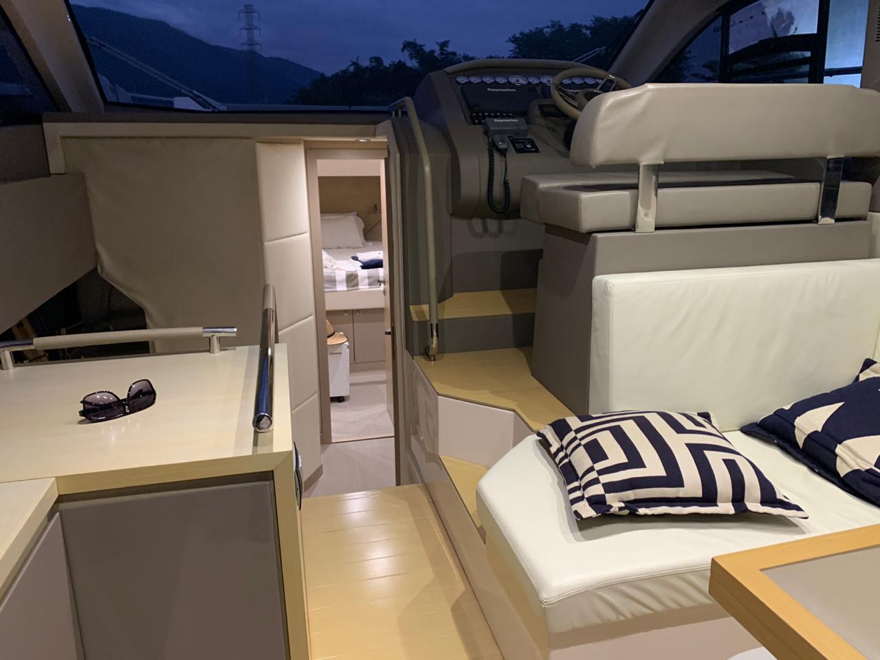 “Sabia que podia comprar sem medo. A C42 tem um salão grande e aconchegante, com visão privilegiada do mar, cozinha com geladeira, cooktop e micro-ondas, hard-top com abertura elétrica, cockpit com agradável espaço de convivência e um layout projetado para beneficiar as áreas ao ar livre”, avalia.