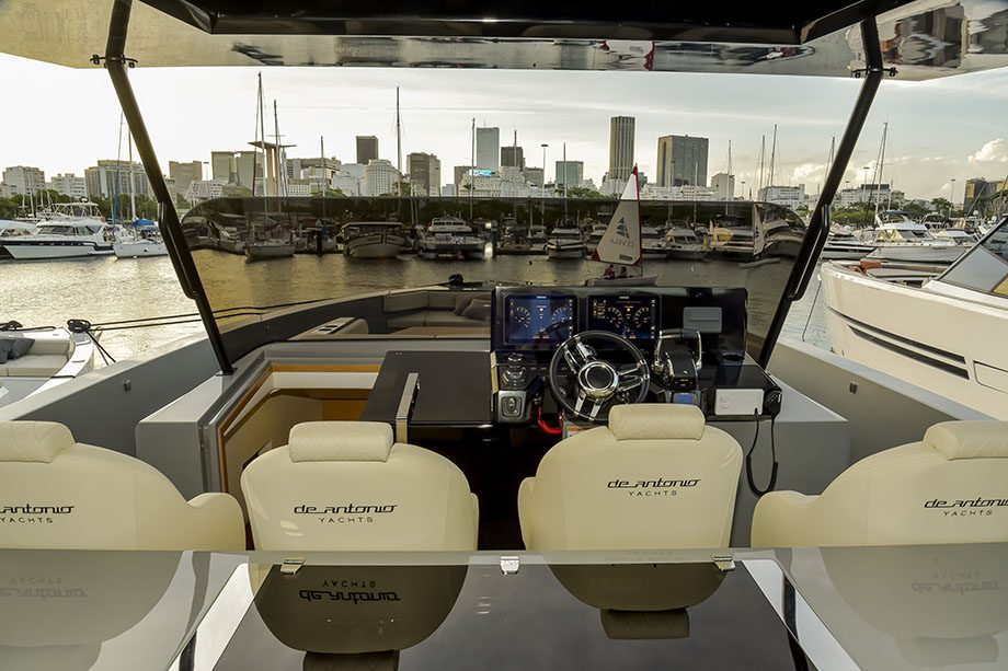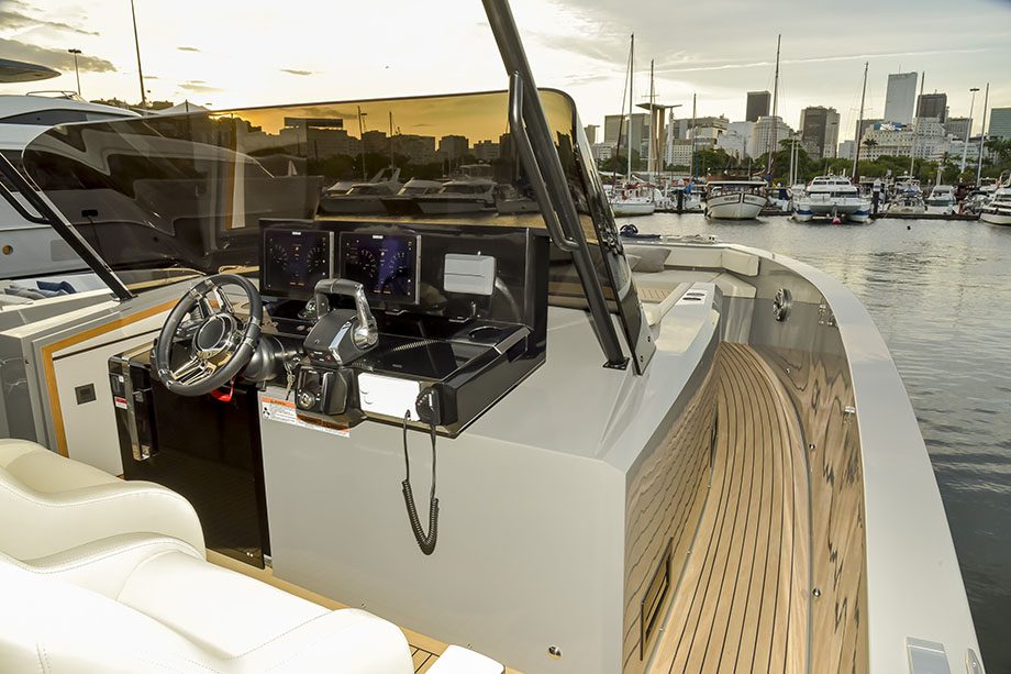 Vasco Trindade, CEO da YB Nautic Group (marca que representa o estaleiro no Brasil), contou à NÁUTICA que “apesar de contar com motores de popa, eles ficam ocultos, o que surpreende o público. Muitos chegam a acreditar que se trata de um modelo com motorização interna”.