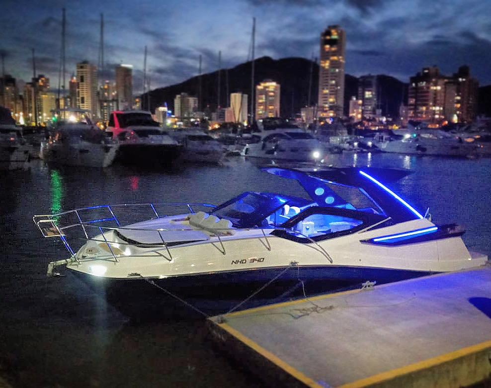 O NHD 340 navegará pelas águas de Santa Catarina, muito populares entre os amantes do mundo náutico, com estreia no Caixa D’Aço. O modelo está equipado com parelha de Mercruiser de 250 hp a gasolina.