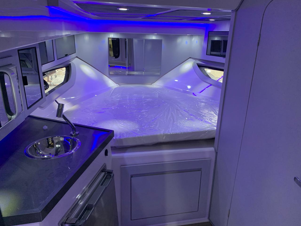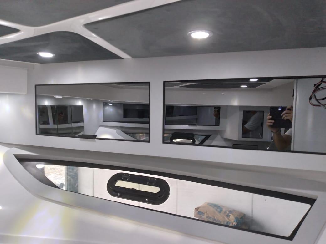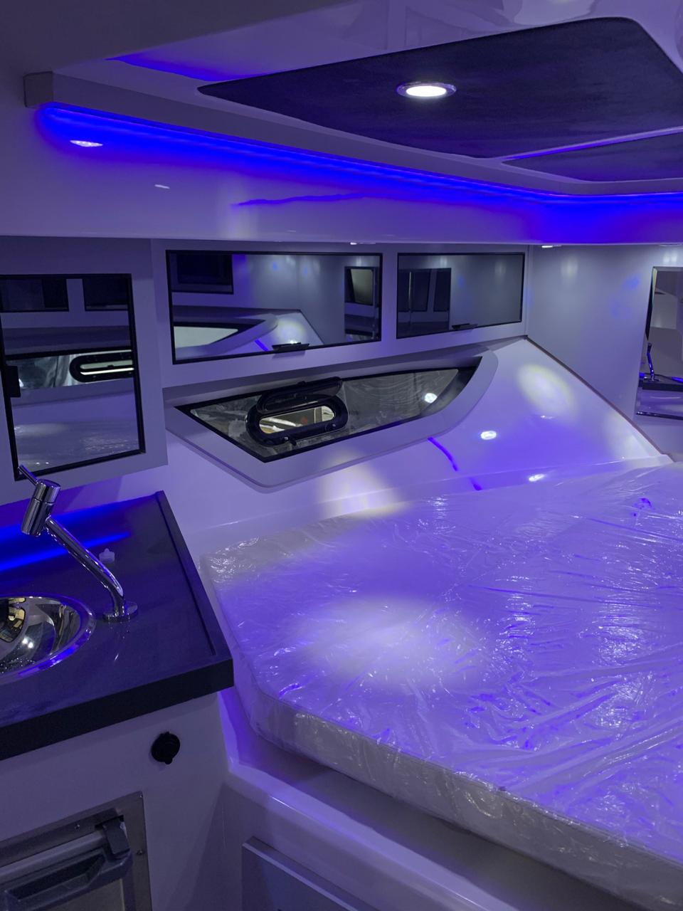 Lançada em novembro de 2020, lancha tem 10,20 metros de comprimento e um dos seus pontos altos é o double open deck – solução que amplia a área útil da embarcação na região da popa – totalizando 7 metros de plataforma –, proporcionando mais espaço e comodidade na utilização desta área, que inclui espaço gourmet com acabamento em teca, e é a “queridinha” dos brasileiros.