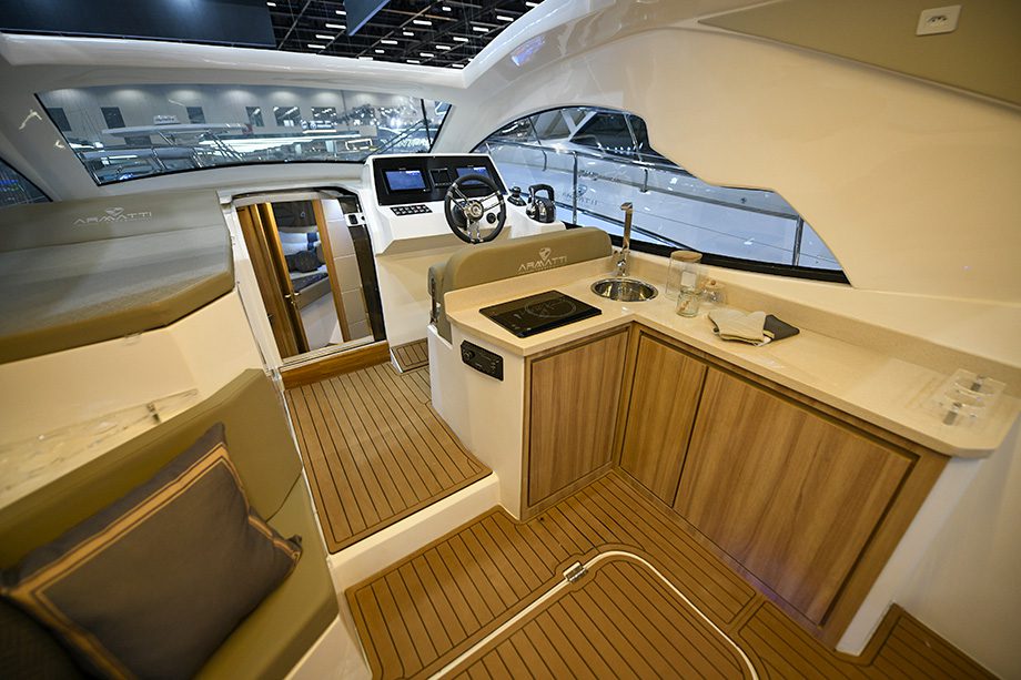 A Armatti 310 Spyder, por sua vez, traz como diferencial um hard top de fibra, além do acesso interno à proa por bombordo.