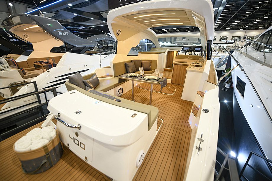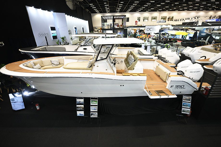 Dos 10 barcos apresentados no estande da marca, cinco são da linha Fishing, voltada a esportes náuticos e pesca oceânica. Segundo Assinato, as embarcações no São Paulo Boat Show têm valores totalmente diferenciados.