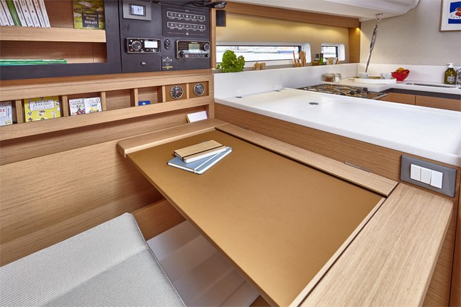 Na área do cockpit, uma mesa dobrável oferece espaço aconchegante com uma área de jantar e uma geladeira portátil escondida no móvel. Outros recursos totalmente novos serão anunciados durante a sua apresentação ao público na próxima edição do “Cannes Yachting Festival”, que acontecerá entre os dias 12 e 17 de setembro.