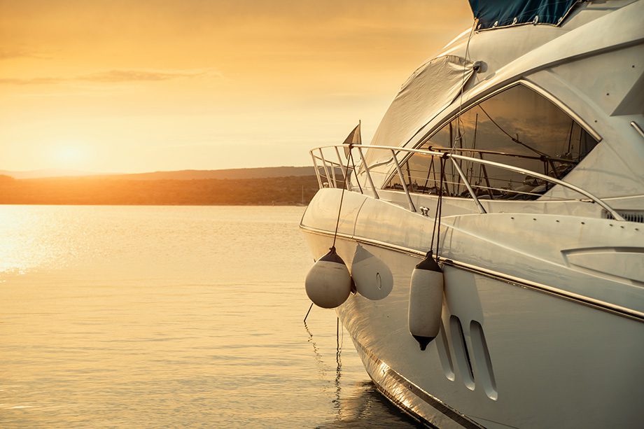 Surpreendentemente, o piso de mármore polido do Admiral 72 tem detalhes em ouro. No acabamento, o iate desenhado por Giorgio Armani, além de arrojado, aposta no luxo com minimalismo. Para isso, usa de materiais refinados e artesanais em seus diferentes ambientes.