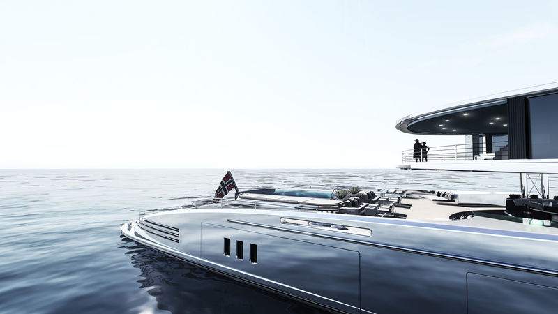 A embarcação com com área social à meia-nau com sofás e mesa de jantar. O posto de comando a estibordo conta com assento para o piloto e co-piloto, enquanto dois assentos complementares virados para a proa são posicionados a bombordo na mesma altura elevada para proporcionar boa visualização do exterior. Um pára-brisa de fibra de carbono envolve a área, permitindo que a tripulação aproveite o dia com conforto. Um toldo portátil fornece abrigo quando necessário, mas desaparece quando não está em uso.