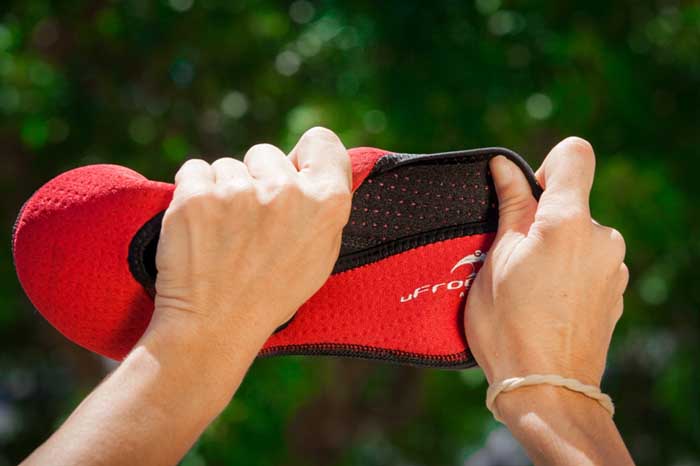 Os produtos uFrog são feitos em Neoprene Air, nome comercial do elastômero sintético, que é uma borracha de alta qualidade revestida com tecidos dos dois lados. É um material altamente resistente, que possui grande maleabilidade e mantém a temperatura dos pés estável, mesmo em ambientes molhados. Possui uma tecnologia de perfuração da borracha interna no neoprene, permitindo maior circulação do ar e facilitando a transpiração dos pés. O solado aderente de borracha foi inspirado nos pneus de chuva dos automóveis, que não desliza em pisos molhados e lisos.