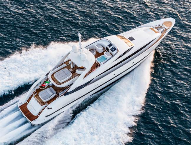 São 30 metros de comprimento, três pavimentos e mais de 300 m² de área no total. Apenas o pavimento superior (flybridge) possui uma área de mais de 65 m², incluindo jacuzzi para 8 pessoas, amplo espaço de relaxamento e de refeições, e segundo posto de comando. O ambiente, estilo lounge, da proa também impressiona assim como as áreas internas, que conta com 5 suítes, grande salão principal com sala de estar, jantar e cozinha equipados, além de posto central de comando com poltronas ergonômicas em couro italiano.