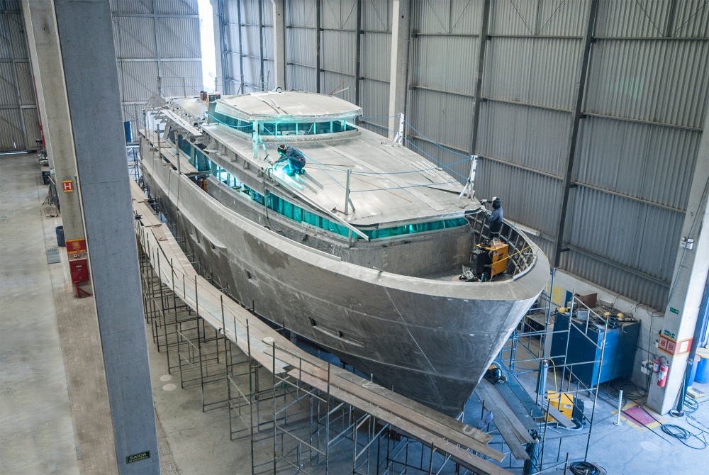 A filial brasileira do estaleiro italiano Azimut Yachts divulgou novas imagens da Azimut Grande 30 Metri, embarcação de 95 pés (30 metros de comprimento e 110 toneladas), que já está com mais de 50% de seus processos finalizados na fábrica da marca em Itajaí. Isso representa o término de uma superestrutura que inclui um casco de 30 metros de comprimento, três conveses e divisão de interiores. Parte da construção da primeira unidade foi realizada na matriz italiana para garantir exatamente o padrão mundial da marca.