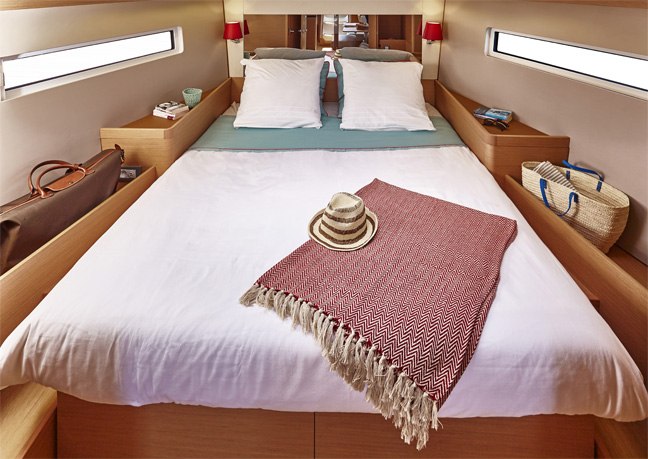 Os cascos possuem grandes janelas integradas que permitem uma boa iluminação natural e boa circulação de ar nos camarotes, que podem ser até cinco, dependendo do layout escolhido. Um destaque para a suíte do proprietário independente do resto do barco e com acesso à água através de uma “praia” privada. A motorização standard é assegurada pelos motores Volvo D11 com 510 Cv e, como opcional, os motores John Deer N13 (580 Cv).